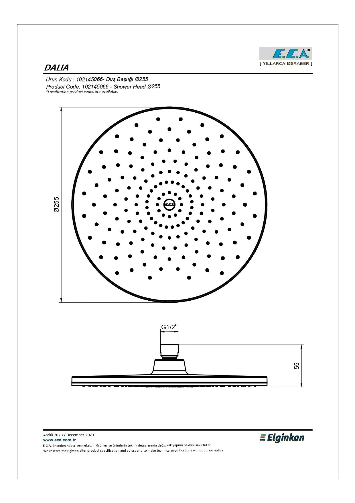 | * | ÜRÜN ADI | : | Eca Dalia Duş Başlığı |