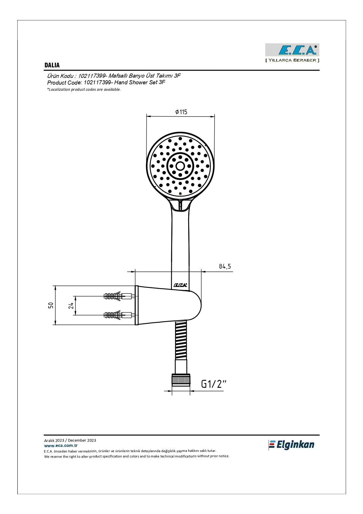 | * | ÜRÜN ADI | : | Eca Dalia Banyo Üst Takım |