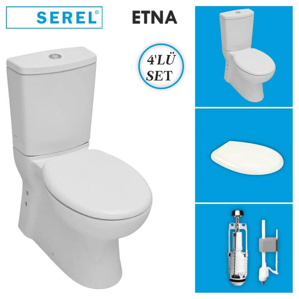| ÜRÜN ADI | : | Serel Etna Duvara Sıfır Klozet + Rezervuar + İç Takım + Anemon PP Yavaş Kapanan Kapak 4'lü Set |