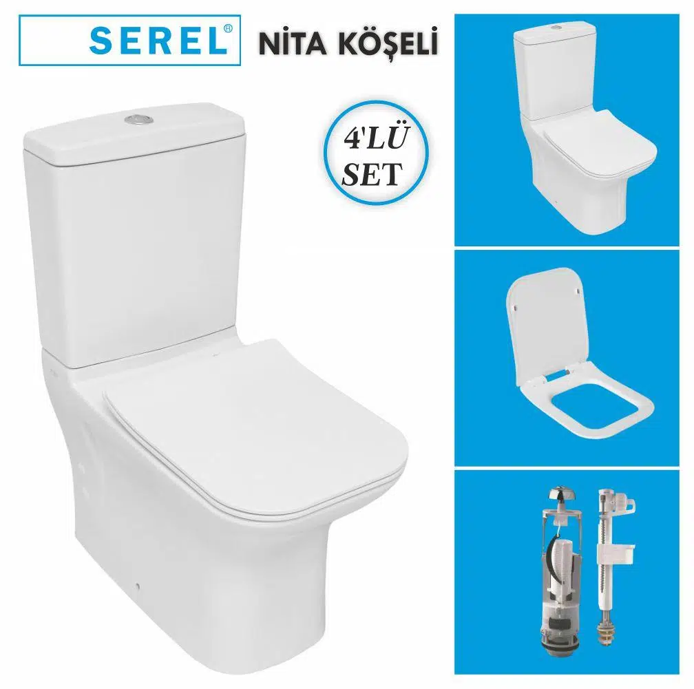 | ÜRÜN ADI | : | Serel Nita Köşeli Duvara Sıfır Klozet + Rezervuar + İç Takım + Zenith Slim Yavaş Kapanan Kapak 4'lü Set |